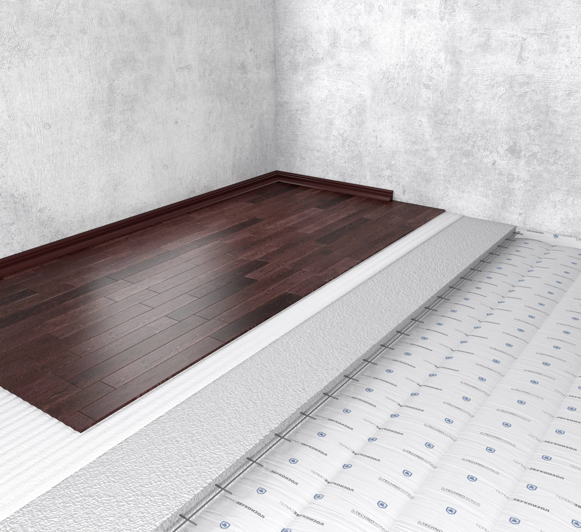 Screed with a surface density of at least 80 kg/m2 depending on TSI modification. Classic wet screed 40-50 mm, semi-dry screed 55-65 mm.