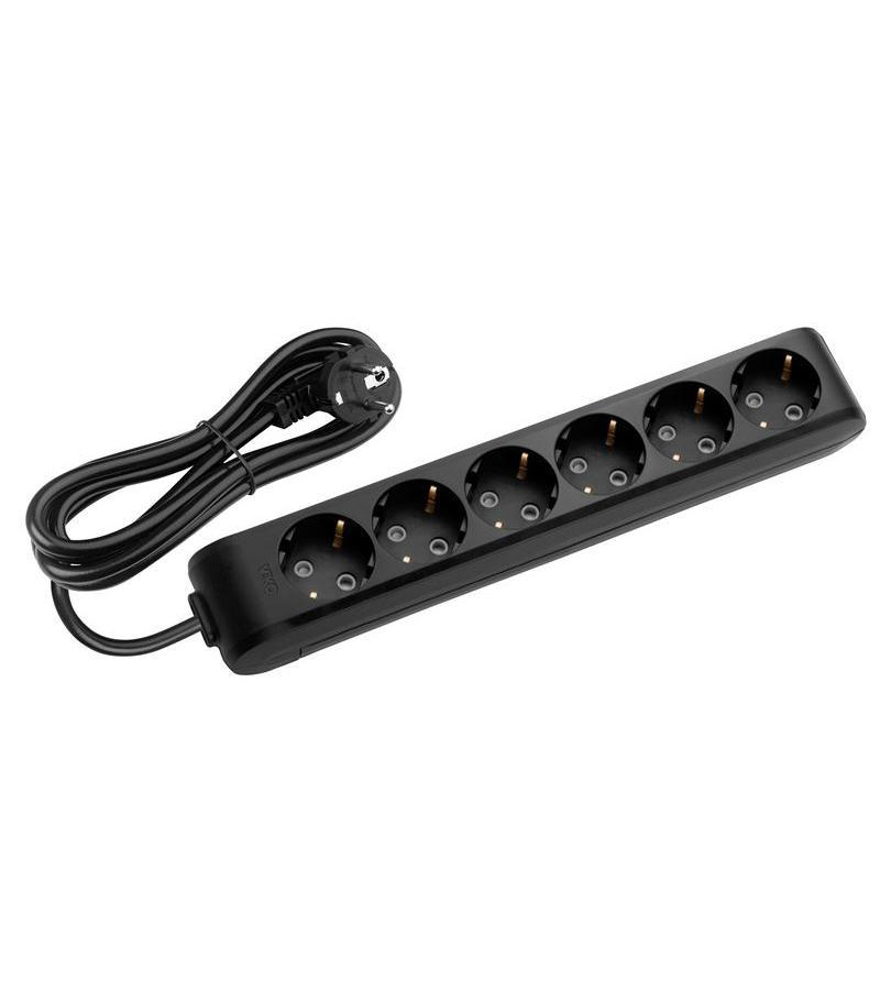Electric extension cord, 6 sockets, with grounding, 3 meters (black) "MULTI-LET"