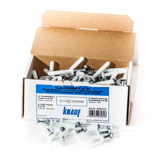 Size: K 6x35 Plasma dowel, used for fastening partitions and profiles, construction elements to load-bearing walls