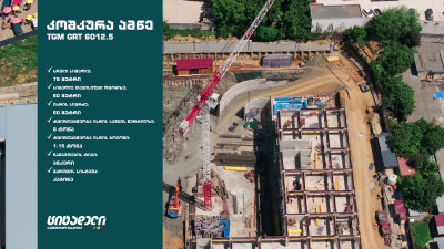 Tower crane Potain MC 125 is installed at the construction site of Arch Gldani