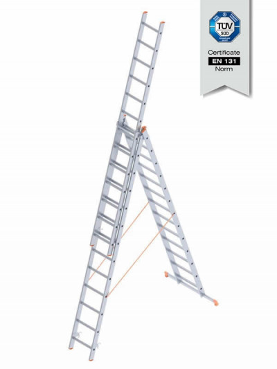 - ალუმინის კიბე სამ სექციანი 3x11 საფეხური (A ტიპი) (7311)