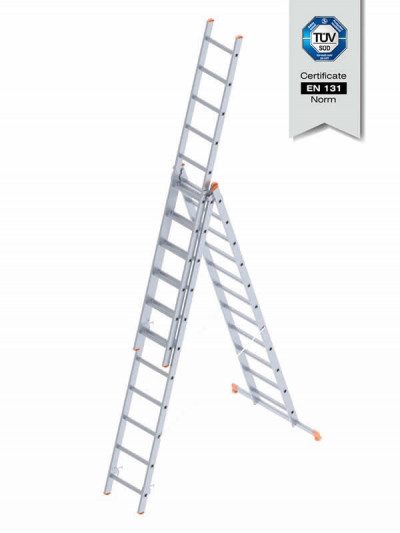 - ალუმინის კიბე სამ სექციანი 3x13 საფეხური (A ტიპი) (7313)